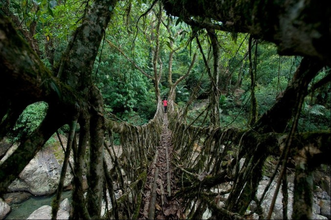 印度农里特的活根桥是由活树根制成的,树根扎根在土里,这样它就不会被洪水冲走。