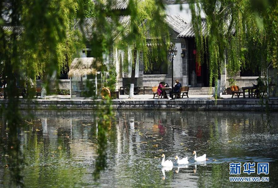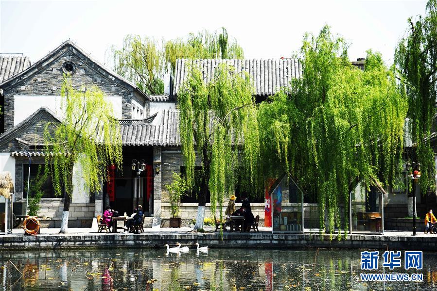 4月13日,游客在济南百花洲历史文化街区休闲。