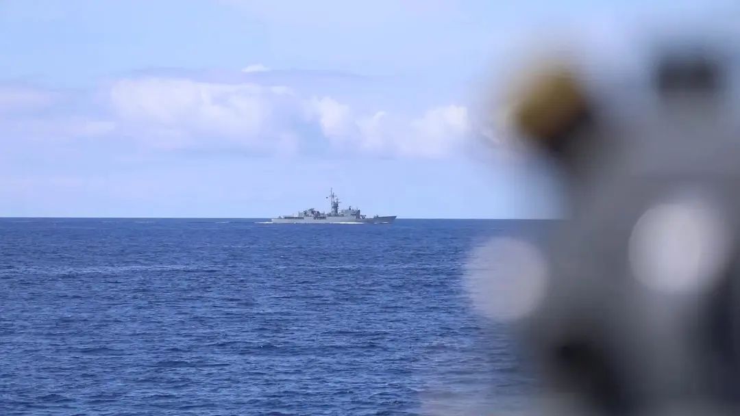 台岛以东,舰艇编队根据现场态势组织超视距对海打击、近距反击等课目演练。