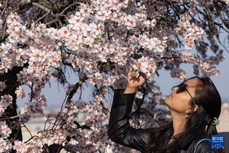 近日,匈牙利首都布达佩斯格列尔特山上杏花盛开,吸引众多游人前来观赏。