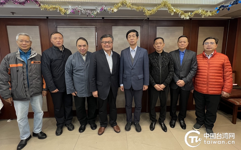 海协会驻澳门办事处主任王刚与孔文吉、中华民族团结促进会成员合影。(中国台湾网 发)