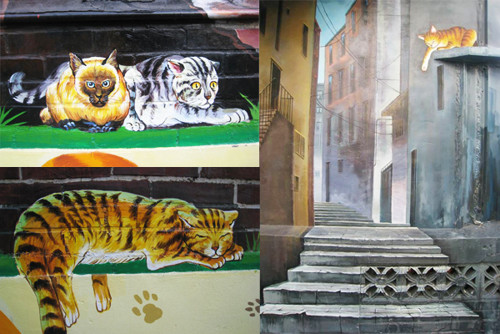 据台湾媒体报道,近几年来,以彩绘为特色的主题村落逐渐地掀起了一股风潮,这些彩绘作品不但为台湾原本纯朴的乡镇带来了别开生面的亮丽色彩,也形成了一股新兴的观光风气,云林县虎尾镇顶溪小区“屋顶上的猫”,在小区的墙壁上绘制了3D猫画,每到节假日总是游人如织,吸引了许多游客前来感受猫咪的魅力。