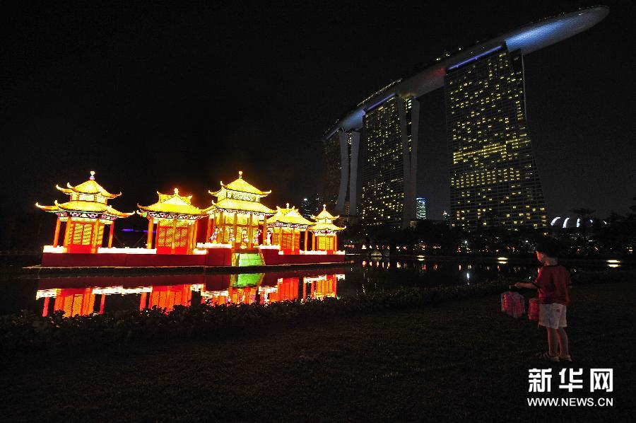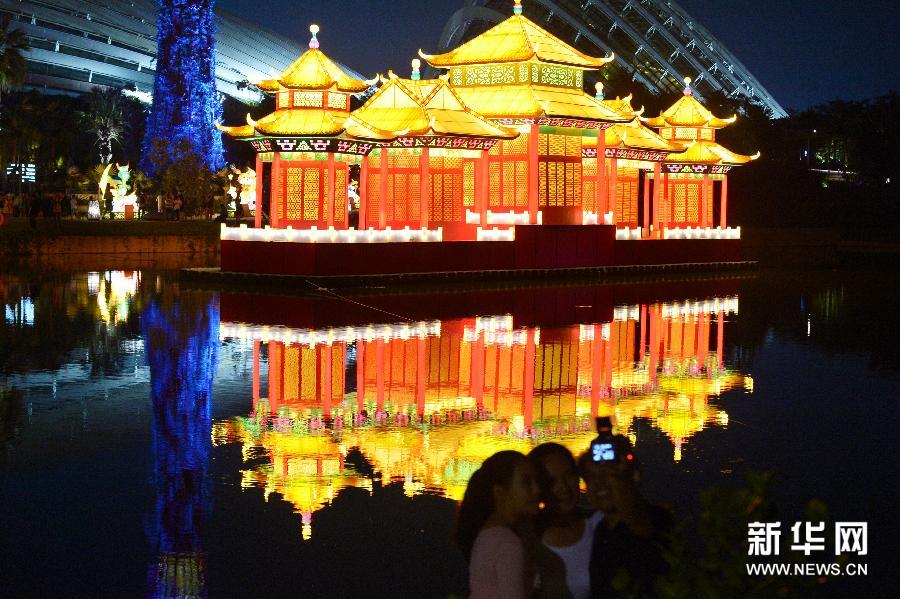新加坡滨海湾花园举行中秋节灯会亮灯仪式