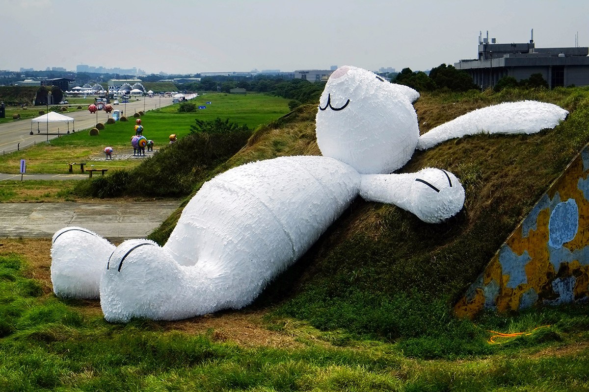 9月2日,由荷兰“大黄鸭”之父霍夫曼打造的大型装置艺术作品“月兔”亮相台湾桃园大园乡海军基地,迎接中国传统中秋佳节。展览期间,海军基地也首度对外开放。
