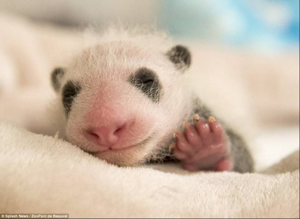 现在小幼崽身上已经呈现出了黑白相间的毛色,与刚出生的模样相比完全不同。
