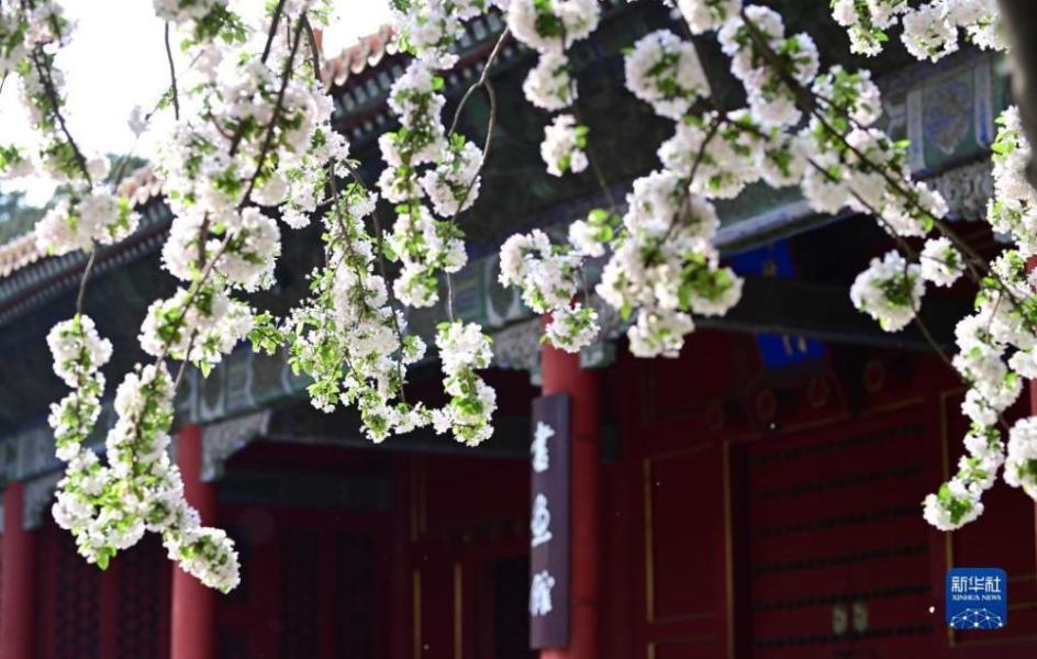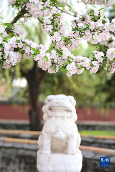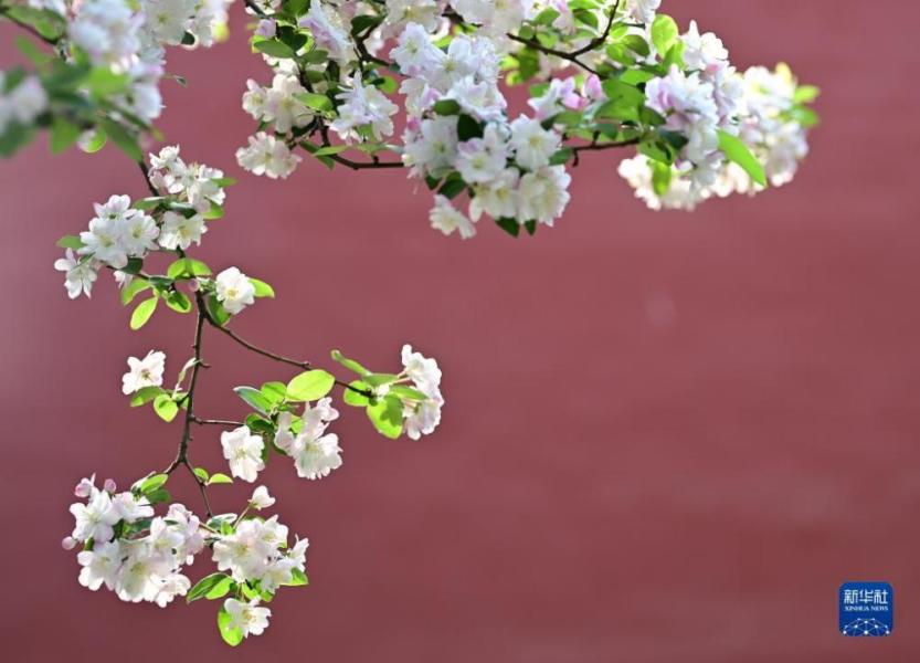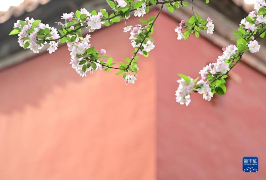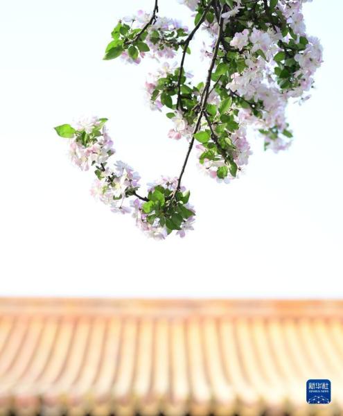 4月13日在北京故宫博物院拍摄的海棠花。近日,北京故宫博物院内的海棠花竞相绽放,芳香四溢。 新华社记者 尹栋逊 摄