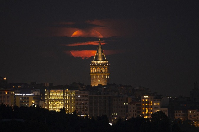 当地时间6月14日,在土耳其伊斯坦布尔拍摄到的“超级月亮”。
