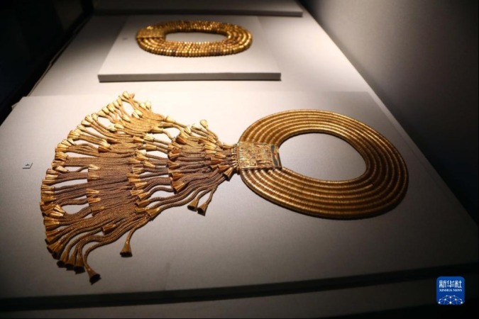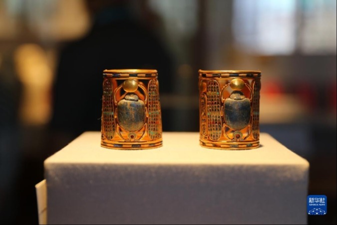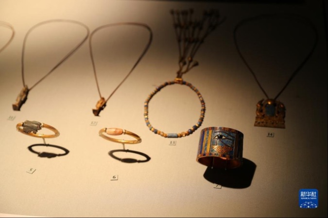 这是10月3日在位于埃及开罗的埃及博物馆拍摄的法老苏瑟奈斯一世的饰品。 新华社发(艾哈迈德·戈马摄)