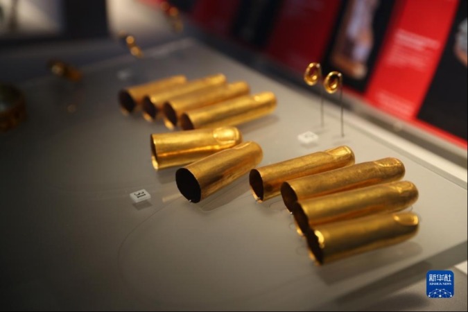 这是10月5日在位于埃及开罗的埃及博物馆拍摄的金质手指套。 新华社记者 隋先凯 摄