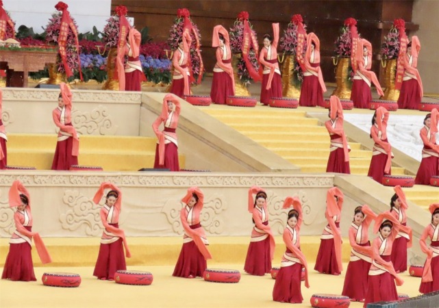 敬献花篮。国家领导人,河南省委、省政府主要领导,主办单位领导,郑州市、新郑市领导,依次向黄帝像敬献花篮。