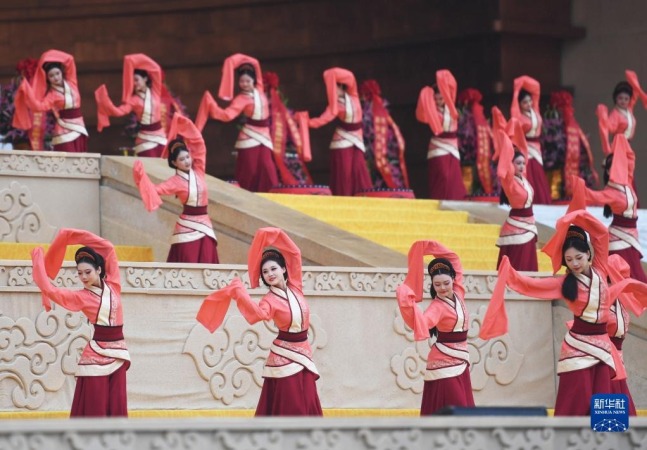 4月22日,演员在癸卯年黄帝故里拜祖大典上表演。新华社记者 张浩然 摄