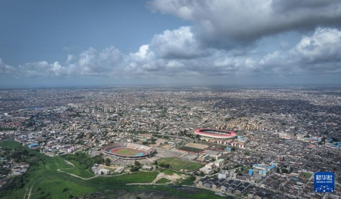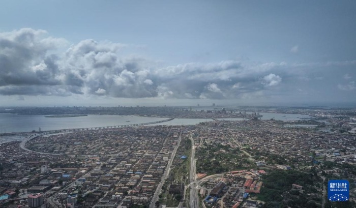 这是3月3日在尼日利亚拉各斯拍摄的城市风光(无人机照片)。新华社记者 韩旭 摄