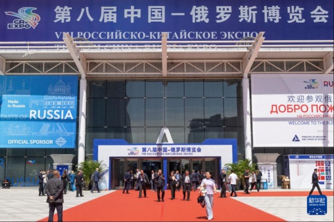 5月18日,参会者出入第八届中俄博览会现场。新华社记者 谢剑飞 摄