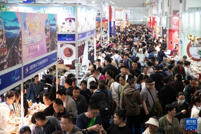 5月18日,参会者在俄罗斯展区参观。新华社记者 谢剑飞 摄