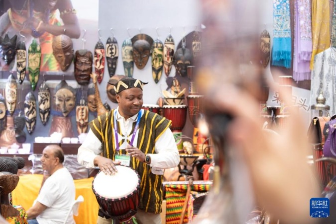 5月18日,在第八届中俄博览会现场,参展商在表演节目。新华社记者 张涛 摄
