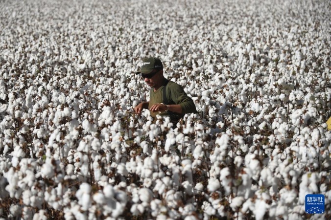 8月6日,在巴西戈亚斯州克里斯塔利娜,工人在棉田中行走。新华社发(卢西奥·塔沃拉摄)