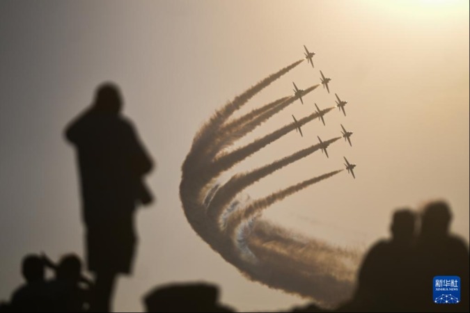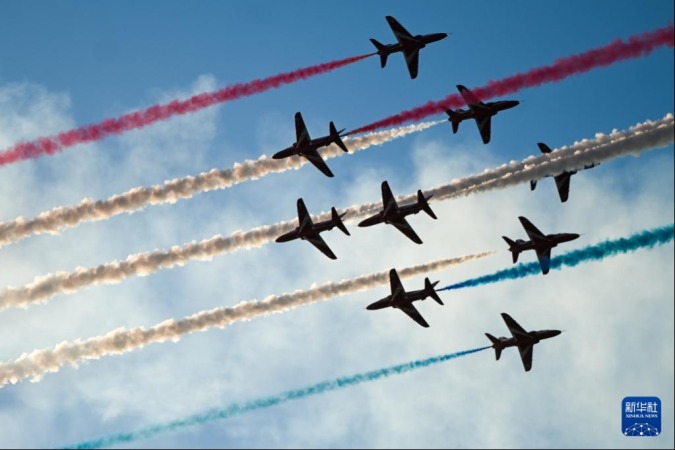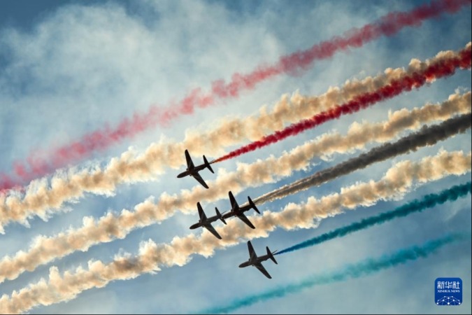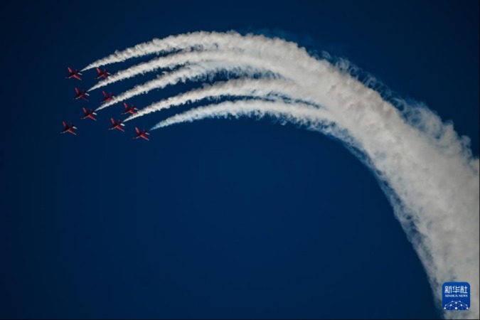 这是9月28日在马耳他圣保罗湾城拍摄的飞行表演。新华社发(乔纳森·博格摄)