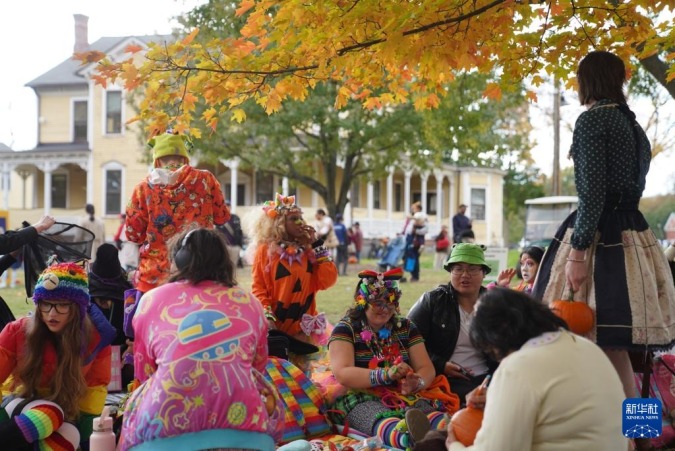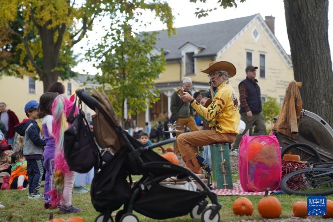 10月25日,人们在美国纽约总督岛参加秋日节活动。新华社记者 张凤国 摄