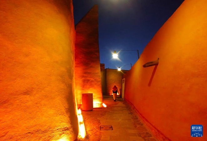 这是10月29日在沙特首都利雅得市区拍摄的迪里耶夜景。新华社记者 沙达提 摄