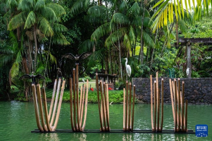 11月13日,在巴西贝伦的一座公园,游客在白鹭群中漫步。新华社记者 王天聪 摄