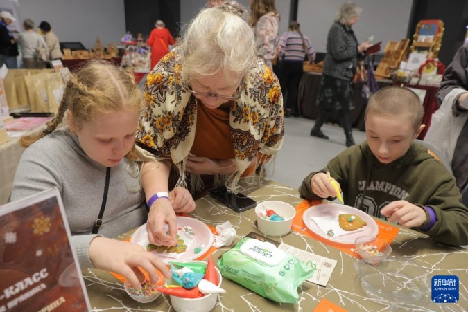 11月30日,孩子们在俄罗斯圣彼得堡体验制作姜饼。新华社发(莫京娜摄)