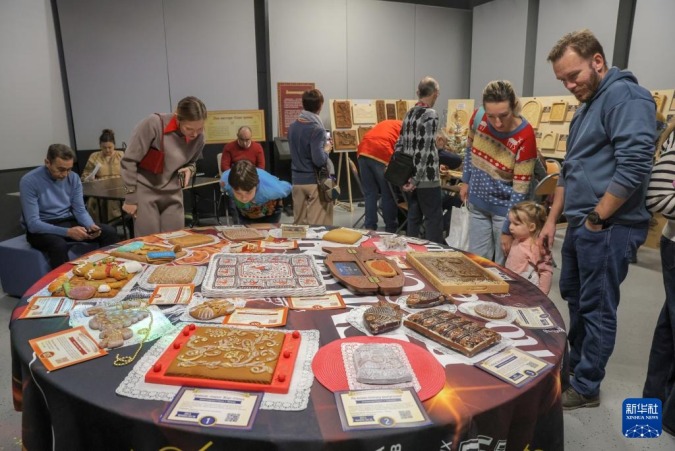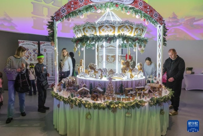11月30日,人们在俄罗斯圣彼得堡参观姜饼作品。新华社发(莫京娜摄)