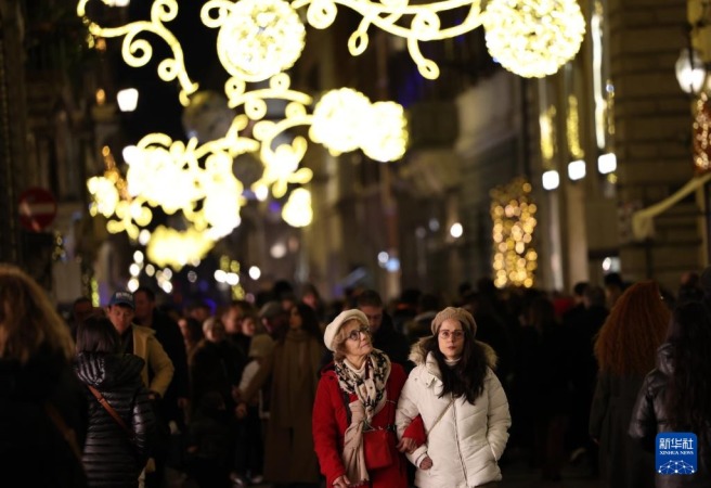 近日,意大利罗马的主要地标建筑和市中心街道点亮节日彩灯,为冬日增添缤纷色彩。