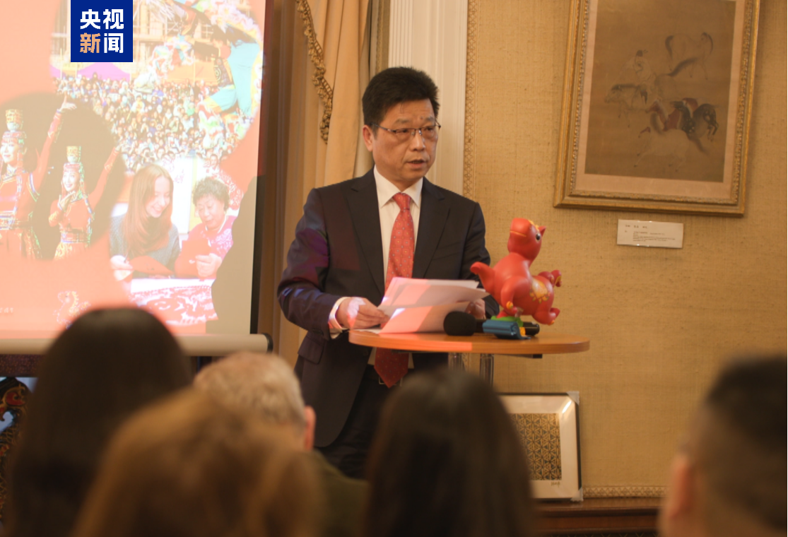 当地时间2月6日,2026年英国“欢乐春节”系列活动启动仪式在中国驻英国大使馆文化处举行,中央广播电视总台马年春晚宣传片在活动上精彩亮相。来自英国各地的政府部门、机构、文艺团体、英国“欢乐春节”系列活动主办方代表,共同见证系列活动正式启动。