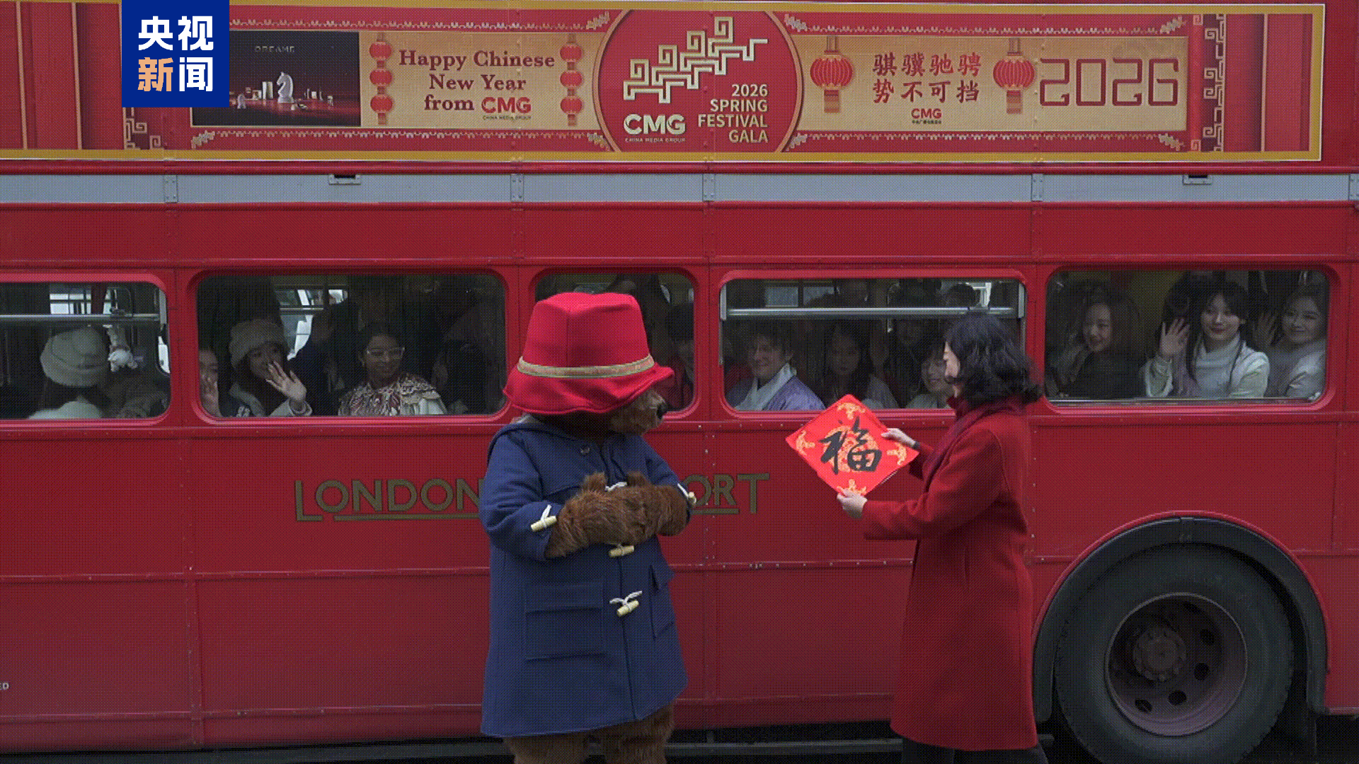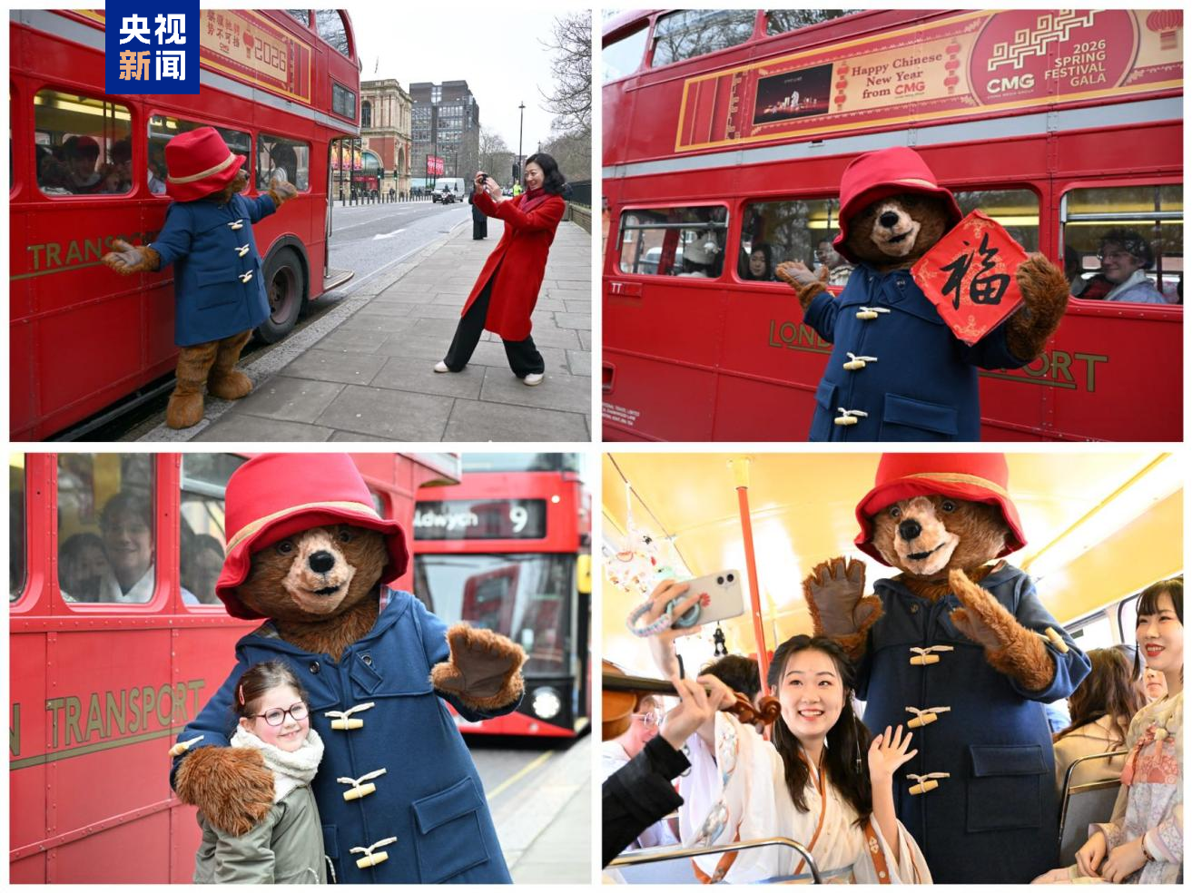 春晚主题巴士吸引了众多目光,也迎来了一位特别的“打卡嘉宾”——深受各国民众喜爱的帕丁顿熊。听说总台春晚登上了英国标志性的双层巴士,这位英国“国民小熊”第一时间赶来,与“中国红”同框亮相,并向中国观众送上诚挚的新春祝福。