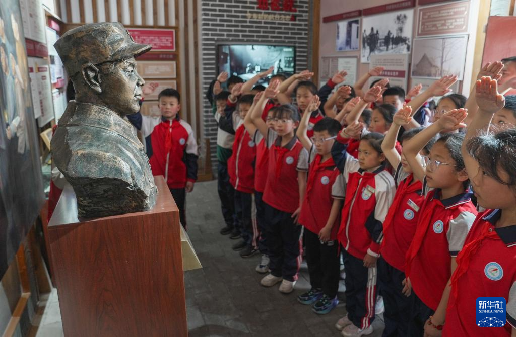 4月2日,甘肃省白银市会宁县思源实验学校学生在会宁县红军会宁会师旧址参观,缅怀先烈。