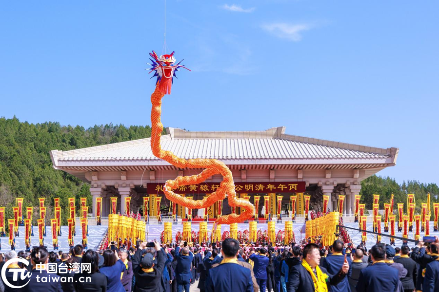 4月5日,丙午(2026)年清明公祭轩辕黄帝典礼在陕西省延安市黄陵县桥山祭祀广场举行。图为“中华龙”昂首腾飞。(中国台湾网发)