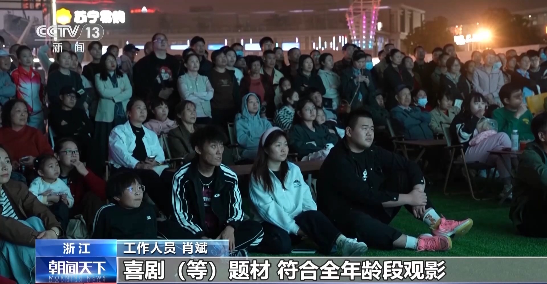 工作人员 肖斌:我们从15日到19日每天安排三场,没想到这么多人次,太火爆了,每场基本上百人以上。我们这次精选了六部影片,题材涵盖国家安全教育、动作、运动、喜剧等题材,符合全年龄段观影,更适配户外观影,给观众提供一个全新的观影体验。