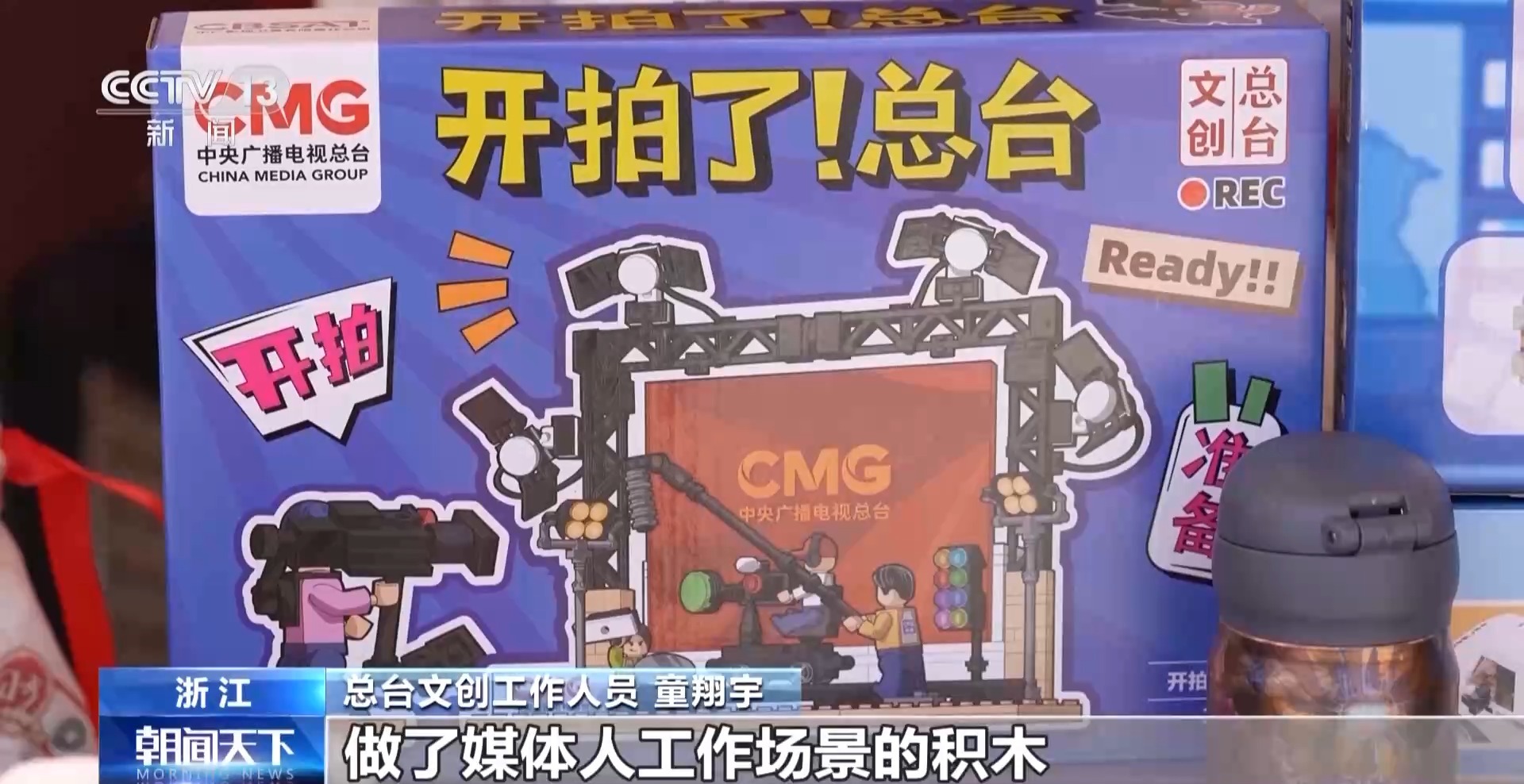 总台文创工作人员 童翔宇:我们所有的文创产品都是基于总台优质的IP资源去开发打造的,做了媒体人工作场景的积木,还有徽章、盲盒。值得一提的是我们的春晚联名款产品,都是卖得比较火热的。