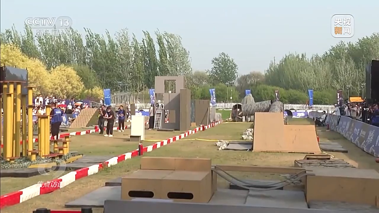 另外一个亮眼的“大招”是,本次半马还专门增设了勇士挑战赛,设置了17项挑战障碍,让机器人上山下水、爬坡过坎。