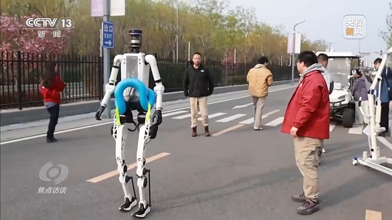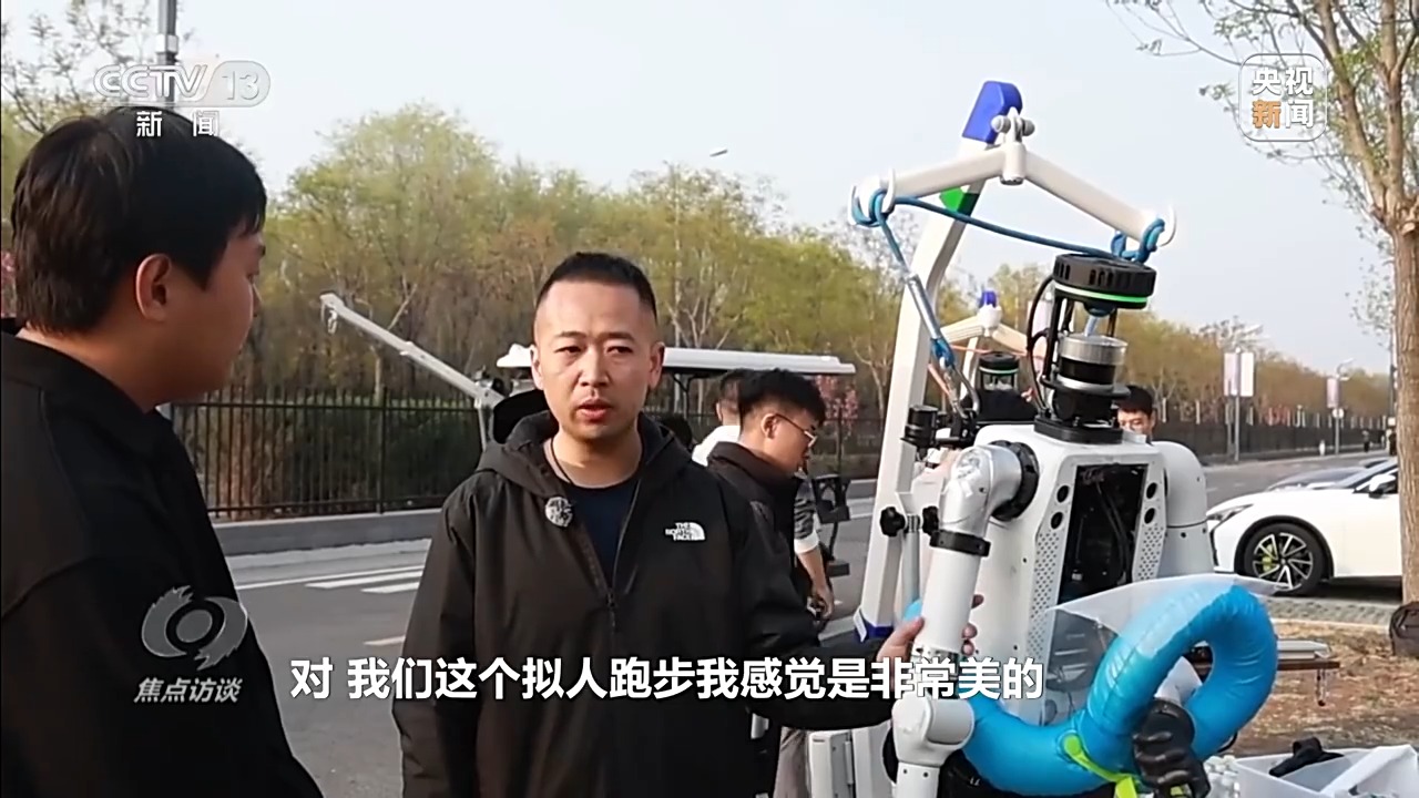 北京人形机器人创新中心自主跑工程师 崔巍:我们机器人的关节比去年更大、扭矩更长,在高速奔跑的情况下,尤其是21公里的赛道长度,可能它的关节会发热,导致过热,所以我们做了液冷处理。