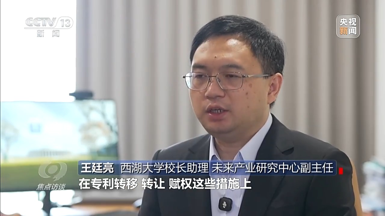 西湖大学校长助理 未来产业研究中心副主任 王廷亮:在地方政府创新创业的政策支持下,在专利转移、转让、赋权措施上,在产业资源的对接上,都积极筹措资源,赋能这些转化项目。