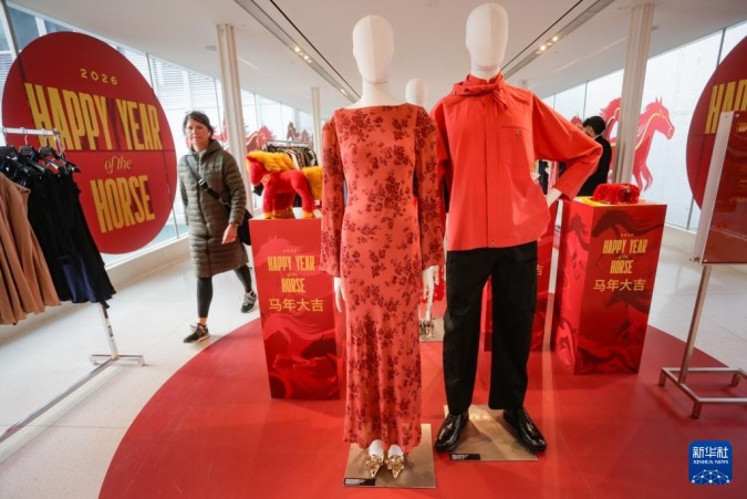 2月4日,顾客走过加拿大温哥华一家百货商店内展示的春节主题服饰。新华社发(梁森摄)