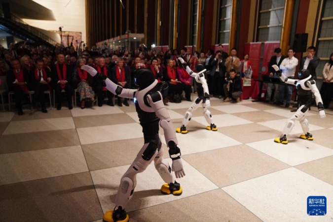 2月9日,“中国智造”机器人在联合国总部举行的“骏启新程”新春庆祝活动上表演舞蹈。新华社记者 张凤国 摄