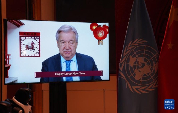 2月9日,中国常驻联合国代表团在位于纽约的联合国总部举办“骏启新程”新春庆祝活动,联合国秘书长古特雷斯在视频致辞中用中文向中国人民致以新春问候,并感谢中国和中国人民对多边主义和全球团结事业的大力支持。