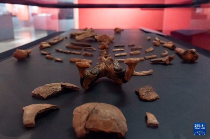 这是2月12日在埃塞俄比亚首都亚的斯亚贝巴的埃塞俄比亚国家博物馆拍摄的露西化石展品。新华社记者 谢剑飞 摄