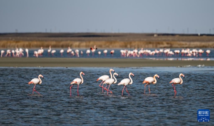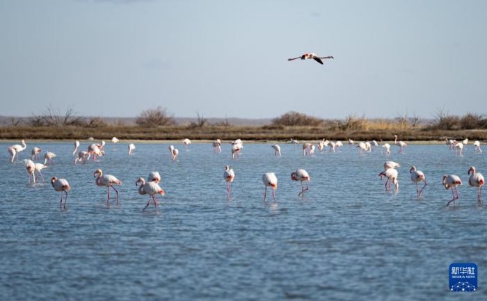 近日,大批火烈鸟在卡拉科尔湖停驻。它们在此停留一段时间,以恢复体力继续春季迁徙。